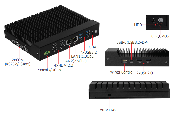 I/O Ports: 2xLAN,2xCOM,4xUSB3.2,2xUSB2.0.4xHDMI.USB-C