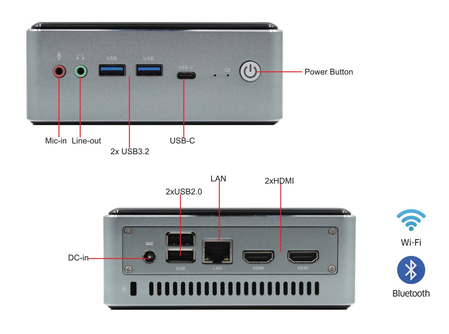 I/O Ports: 2xUSB3.2, 2xUSB2.0, 1xLAN, 2xHDMI, USB-C, Line-out, Mic-in,