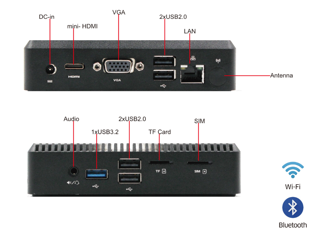 Expansion: 1x Mini PCIe for WiFi, 1xSIM, 1xTF
