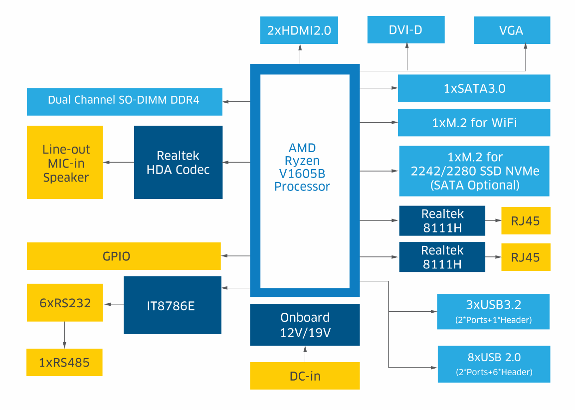 高性能处理器:搭载AMD Ryzen™ V1605B四核处理器,为您的设备带来卓越的性能和高效的计算能力,无论是复杂的计算任务还是多任务处理,都能轻松应对。