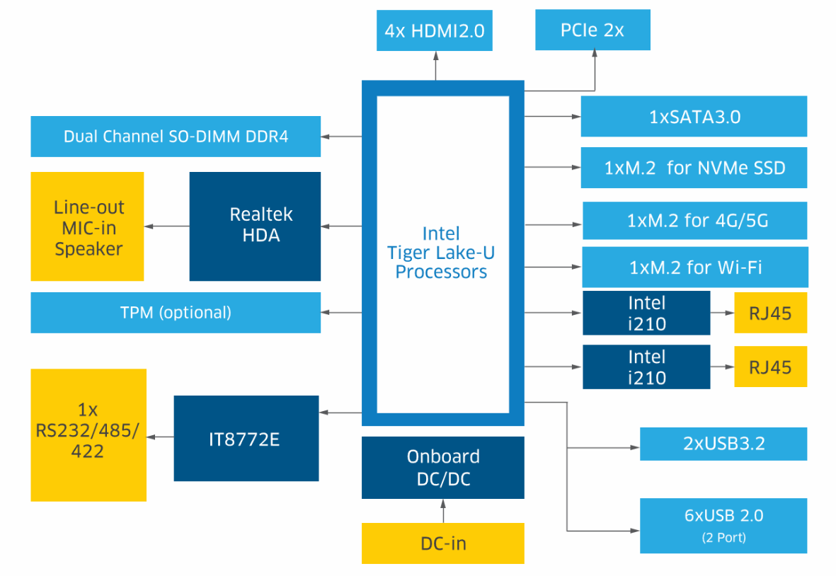 Expansion: M.2 For WiFi, M.2 for 4G/5G, PCIe2X