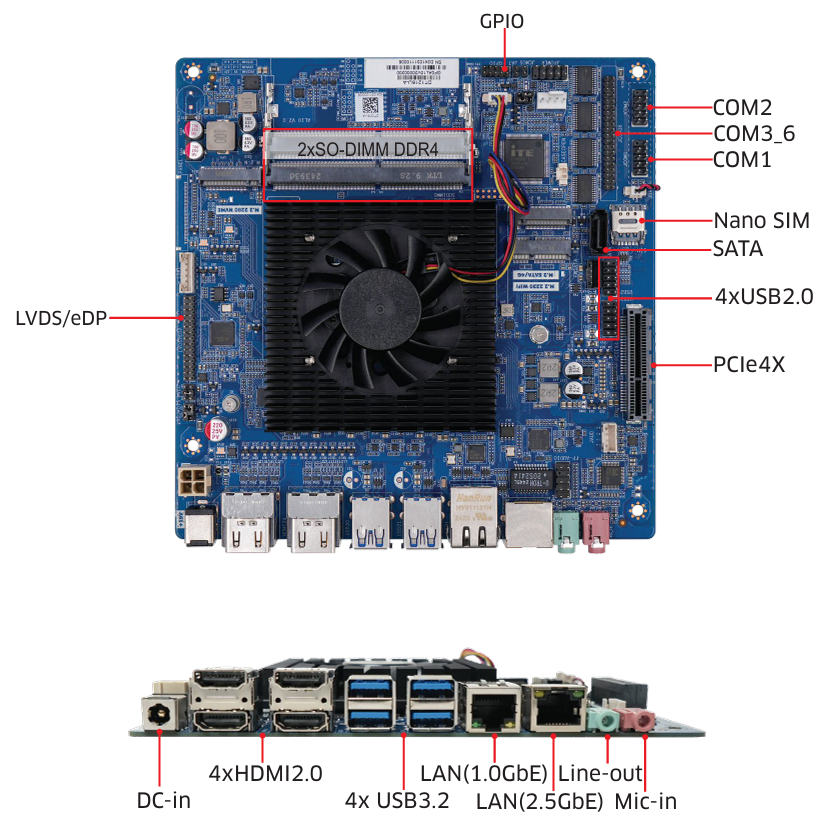 Expansion: M.2 for WiFi, PCIe 4X, Nano SIM