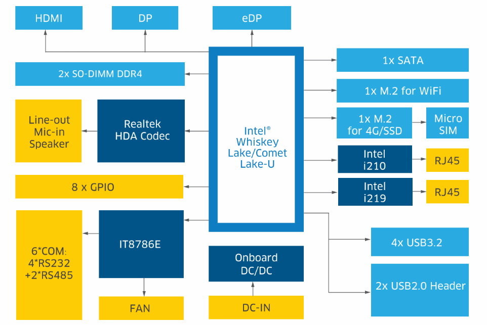 强劲性能:搭载Intel Whiskey Lake/Comet Lake-U处理器,带来出色的计算能力和低功耗表现,满足各种高负载应用需求。